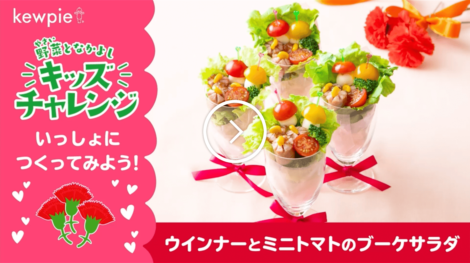 細長 い種類 を選 んでね。モッツアレラチーズは、ミニトマトの中心 におさまるときれいに仕上 がるよ。 -