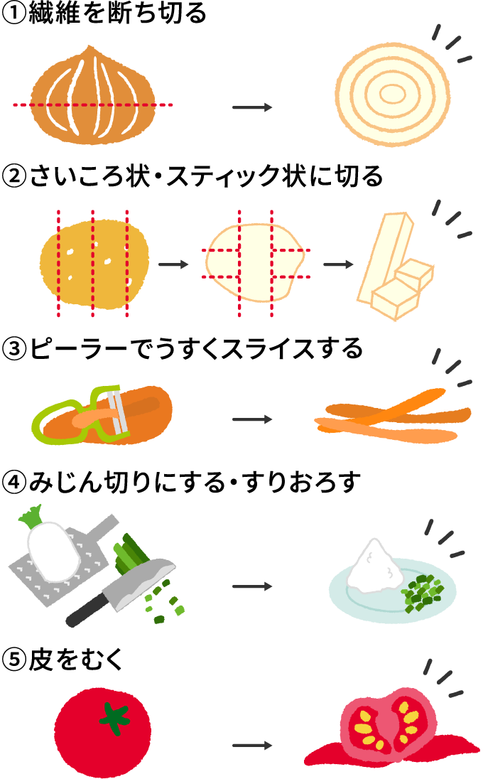 食べやすい大きさに切ったり、やわらかく下処理をしたり、好みにあわせて調理しましょう。