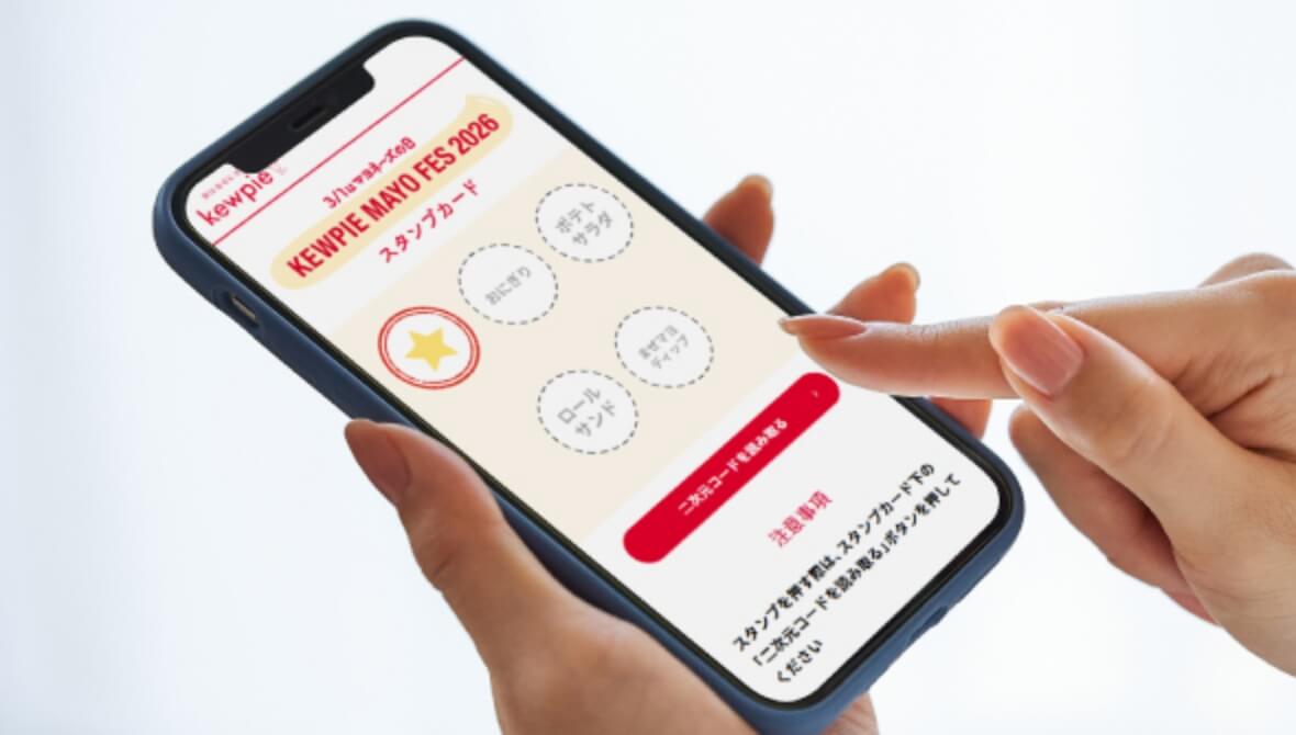 表情解析AIが、あなたの「マヨ顔(キユーピー マヨネーズを食べた時のおいしそうな表情)」度を測定!参加者全員に、ステッカーをプレゼント。