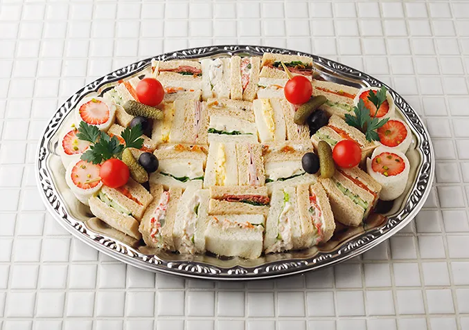 サンドイッチ文化発祥のイギリスで、ゆったりとした午後のひとときに、会話と共に楽しむのがティーサンドイッチです。一口サイズのシンプルなサンドイッチは、パンは薄くて具もシンプル。ボリューミーなサンドイッチがもてはやされるこの頃、ちょっとさみしくに見えるかもしれませんが、食べてみるとその理由がわかります。 -