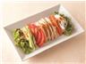 きゅうり、トマト、にんじんをたっぷりと添えた、野菜が中心の棒々鶏サラダです。ごま風味がしっかりと効いて、香り、酸味、うま味のバランスが程よく、さらりと具材にからまり、使い勝手のよいドレッシングです。
