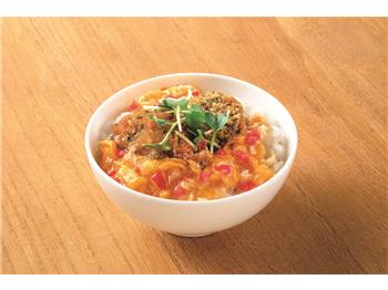 熱器に[A]を盛り合わせ、加熱したスノーマン 丼用たまご(だし風味)をかける。
