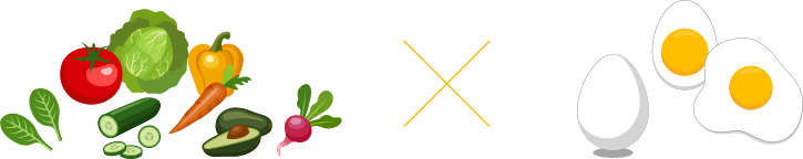 卵、野菜、じゃがいも、マッシュルーム等を盛り合わせた