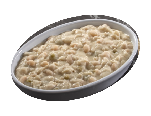 最適な粘度:豆のピューレを使うことで、お皿に盛り付けやすい粘度にすると共に、満足感のある味わいに
