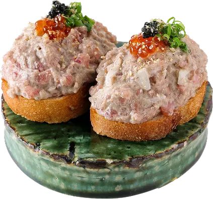 トリュフオイル、トリュフペースト、トリュフ塩、シークワーサー果汁をマヨネーズと合わせたソースをネギトロと混ぜた。粘度があるため、食材同士をつなぐことができるのもマヨネーズの利点。「しっかりまとまるので盛りつけの作業性が高い」(飯山氏)。