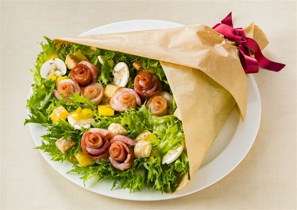 リース、デコレーション、フラワーの華やかサラダと、パーティーを盛り上げるメイン&サイドディッシュのレシピをご紹介します。