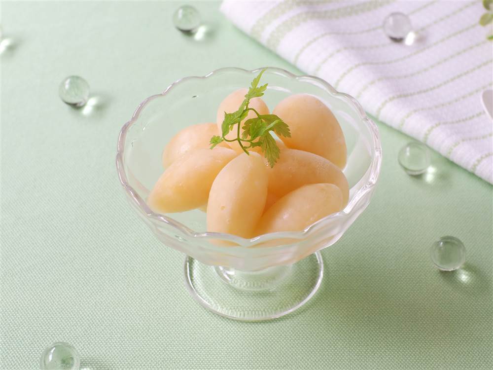 まるごと果実をそのまま凍らせた、かんたんにできるシャーベットです。まるで生の桃を食べているかのような果肉感がたのしめます