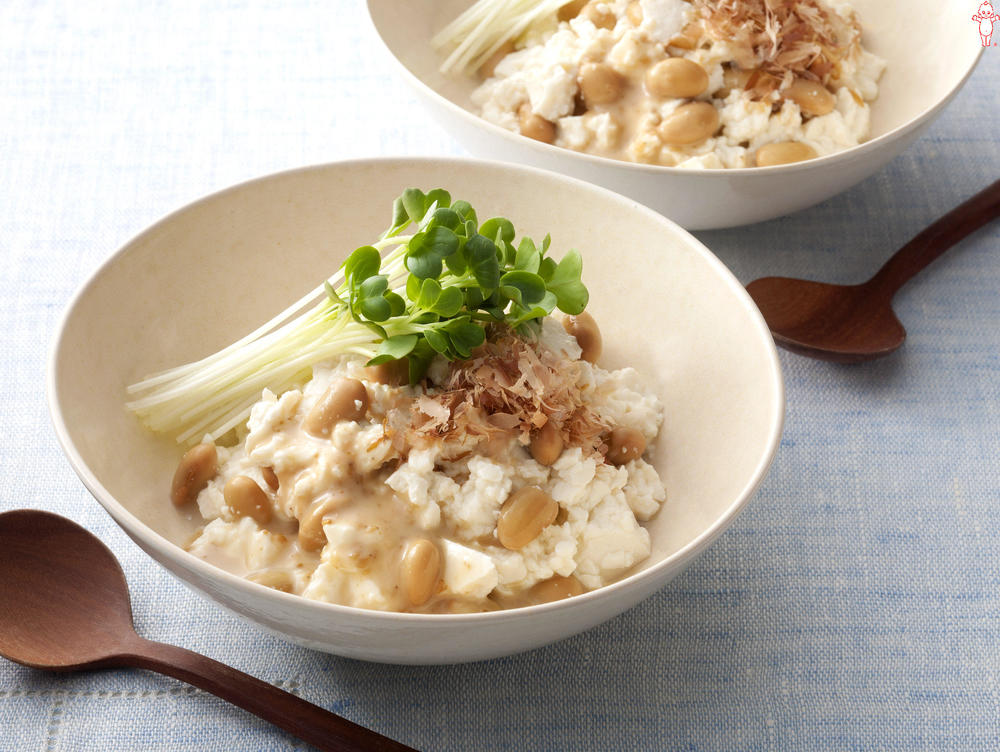 1木綿豆腐は水きりし、手でちぎってボウルに入れる。