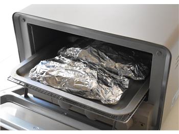 オーブントースターで加熱する事により、水分が出る為、アルミホイルは2枚重ねてください。