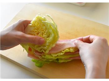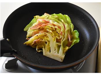 1キャベツの間にベーコンをはさむ。
