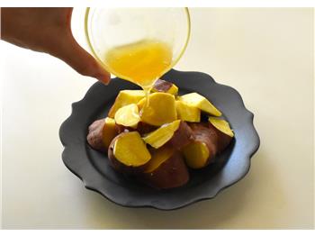 さつまいもは水にさらしてアク抜きをすることで、きれいな色に仕上がります。