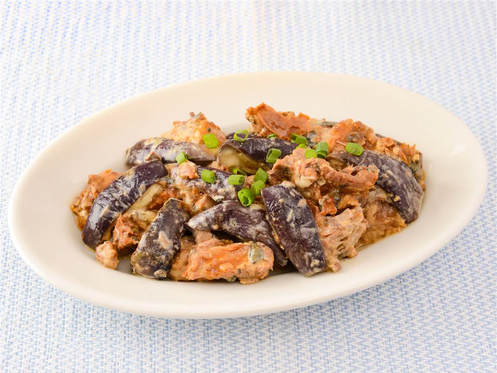 さばみそ煮のみそ味とマヨネーズを合わせることで、コクのあるおかずになります。なすがさばのうまみをたっぷり吸い込みます。