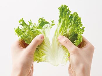 1リーフレタスは冷水にさらして水気をきり、半分に切る。