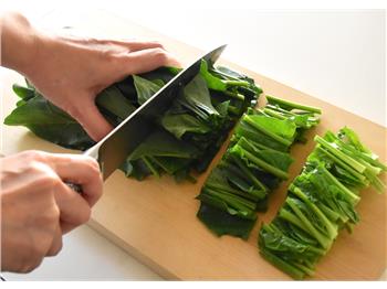2ほうれん草は長さ4cmに切る。