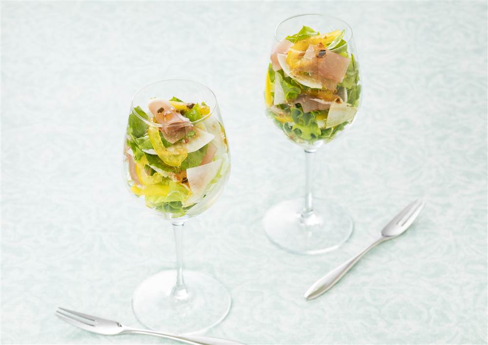 リーフレタスは冷水にさらして水気をきり、食べやすい大きさにちぎる。