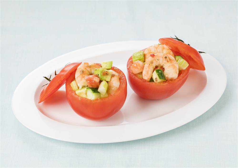 5器に④を盛りつけ、トマトの上の部分を添える。