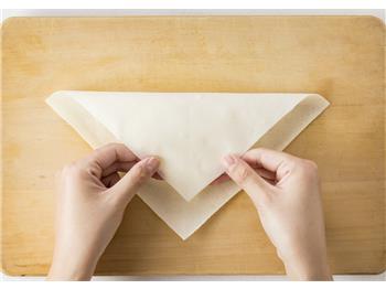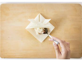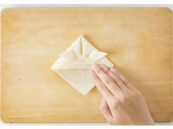 9⑧の三角形をポテトサラダを包むように折り込み、①をつけてくっつける。