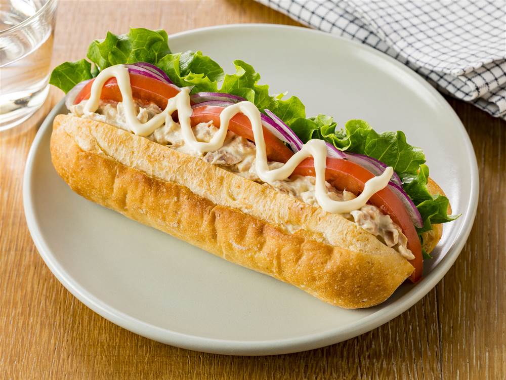 片手で気軽に食べられる彩りのよいサンドイッチです。キユーピーハーフのコクとうま味がツナや野菜とよく合います。