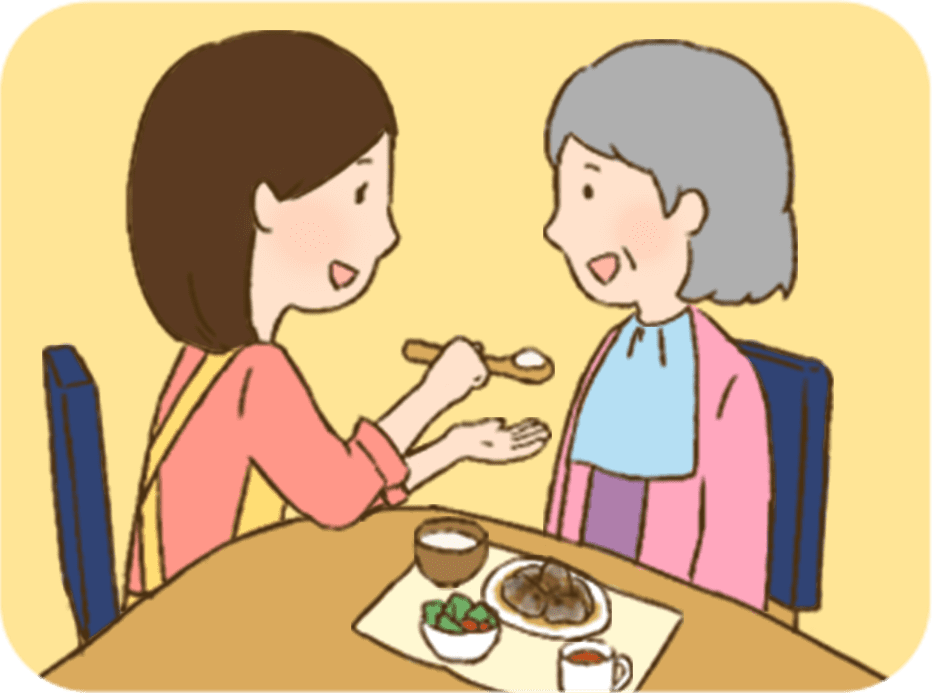 高齢者や食べる力が弱くなった方の食事づくりは、常食から柔らかい食事に変更するため大変です。なにがなんでも1日3食全て手作りしようとして、倒れてしまうくらい自分のことを後回しにしてしまう方もいます。家族がひと息つける時間をつくり、しっかりと体調を整えることが重要です。